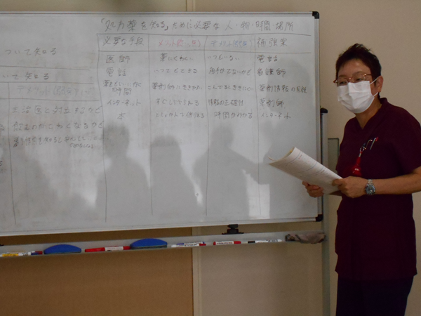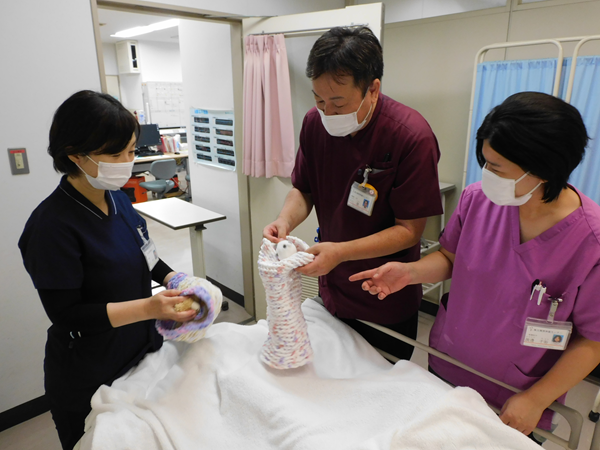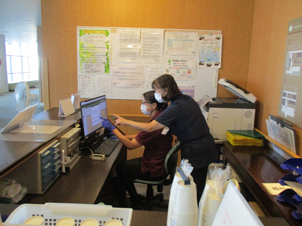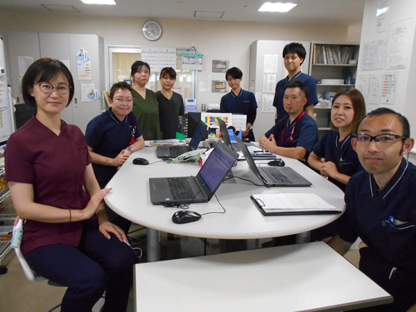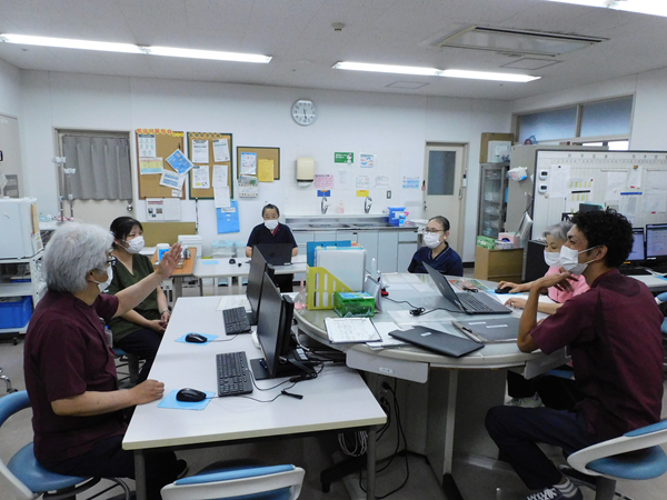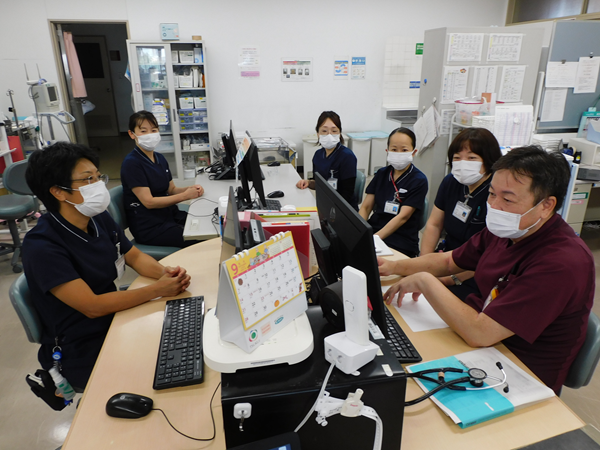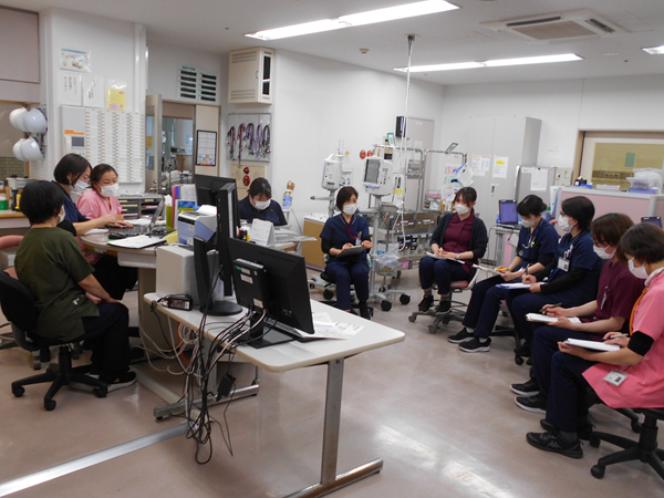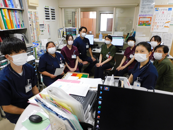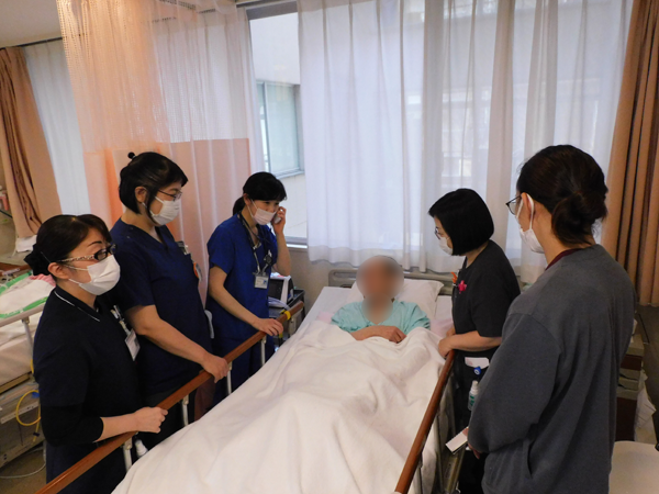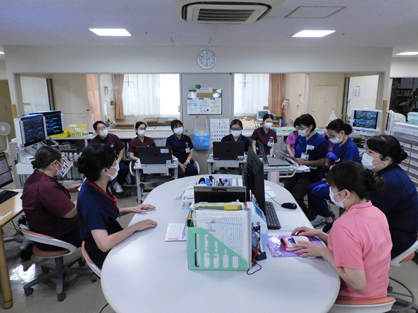 身体的な治療が中心ですが、患者様とご家族の意向を確認しつつ、お一人お一人の状態に合わせ、精神の安定と身体機能をできるだけ保持・向上できるような看護を目指しております。長期療養される方も多いため、毎日のカンファレンスでは受け持ち看護師が中心となり他職種も交えた話し合いを行っています。また面会時にはご家族に寄り添い、希望や不安を確認し安心できる入院環境の提供を心がけています。