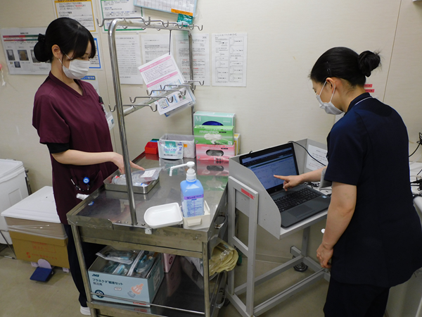 精神科外来は精神科に通院する患者様の診療や治療の補助、必要な検査の案内などを行っております。また各病棟への入院対応や退院後の支援も行っており、患者様の状態や生活背景を把握し、必要に応じて他職種と連携を取りながら地域で安心して生活が出来るようサポートをしております。そのためには患者様の話を傾聴し、些細な変化にも気付けるような看護を目指しております。「心身共に健康で」をモットーに日々笑顔を忘れないよう努力しております。